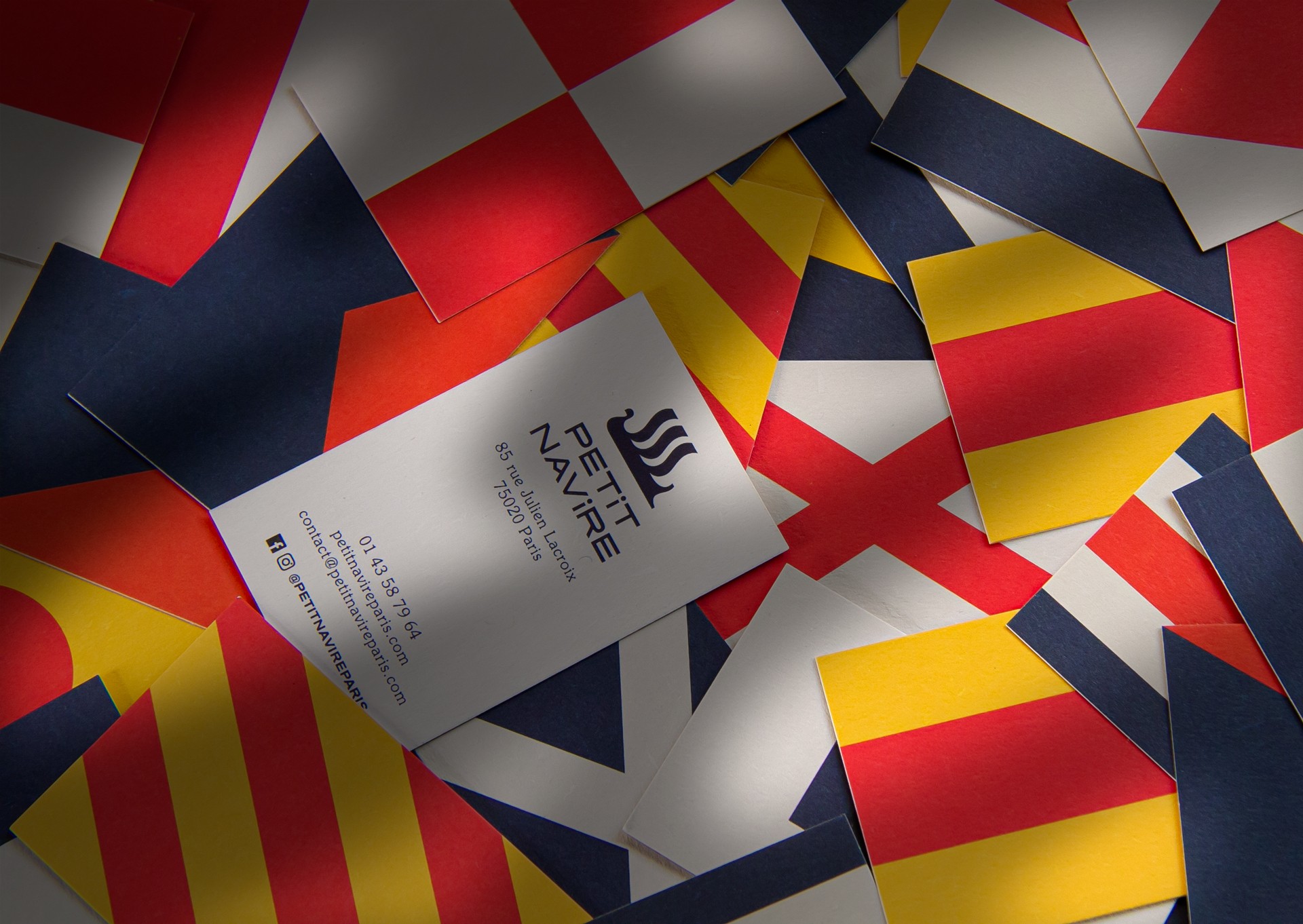 Petit Navire est un restaurant méditerranéen ouvert en 2019 dans le quartier de Belleville à Paris. Son ambition est de devenir un des lieux majeur de convivialité, de partage et d’échange de ce quartier bouillonnant. Afin de mettre ces mots en image, nous avons conçu une identité visuelle appuyée sur le code de communication maritime international.